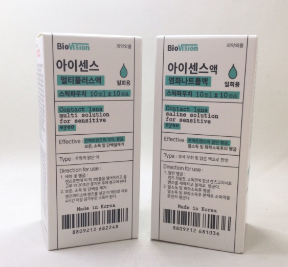 렌즈 세척액은 큰 용량이 아니라 1회 쓸 분량으로 되어있는 제품이 있다.
